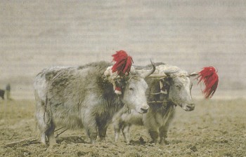 На Тибете местные земледельцы ввиду высокой цены на сельскохозяйственные машины предпочитают по старинке впрямтъ в плуг проверенных столетиями послушных яков