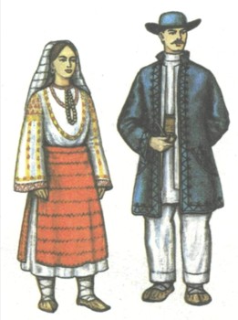 Традиц. жен. одежда - белая холщовая рубаха туникообразного покроя с ластовицами (кэмашэ) или короткая кофта (ие); поясная одежда - цветная шерстяная несшитая юбка (катринцэ) или плиссированная юбка с разрезом на боку (вылник); богато орнаментированный узкий тканый пояс и 2 фартука, надеваемые спереди и сзади (фотэ); жилет - суконный (илик) или меховой (кожок); на голове - покрывало (мара-мэ) из шёлка, косынка или чепец (чяп-сэ). Муж. костюм - холщовая рубаха туникообразного покроя или на кокетке, с ластовицами; штаны из белого холста или шерсти, кожаный или шерстяной широкий пояс и безрукавка. Головные уборы - смушковые шапки, войлочные, фетровые или соломенные шляпы. Обувь - сыромятные постолы. Зимой мужчины и женщины надевают суконные свиты или овчинные кожухи.