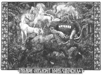 — Не робок ты, гляжу, человече. Давай поступим так: коня златогривого — мне, а одну из моих царь-девиц — тебе.