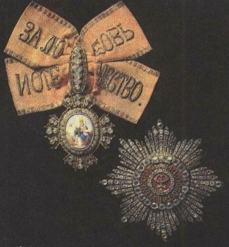 Орден Св. Великомученицы Екатерины. Учрежден Петром I в 1714 г. Его девиз — «За любовь и отечество».