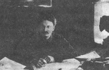 Лев Давидович Троцкий (187S — 1940) — один из активнейших участников октябрьских событий. Будучи наркомом иностранных дел, возглавлял делегацию на переговорах в Брест-Литовске о заключении сепаратного мира с Германией. В качестве наркома по военным и морским делам руководил созданием Красной Армии, глава Революционного военного совета. Убит в Мексике по распоряжению И. В. Сталина.