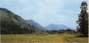 выс. 1400-2200 м. Горно-таёжные леса, сменяющиеся с высотой горными степями